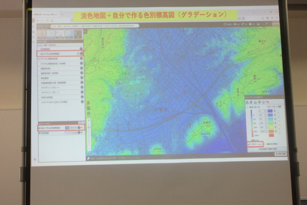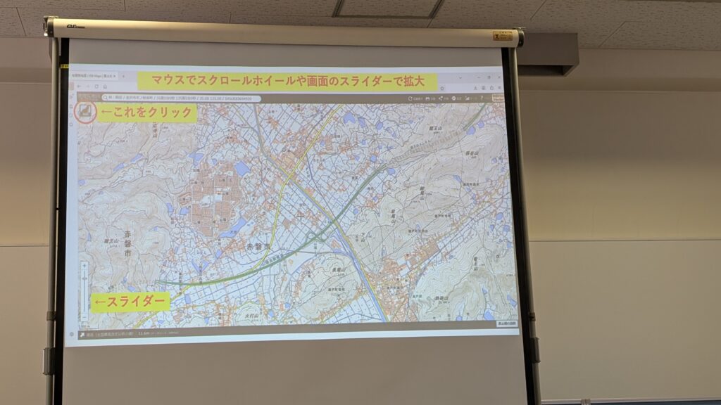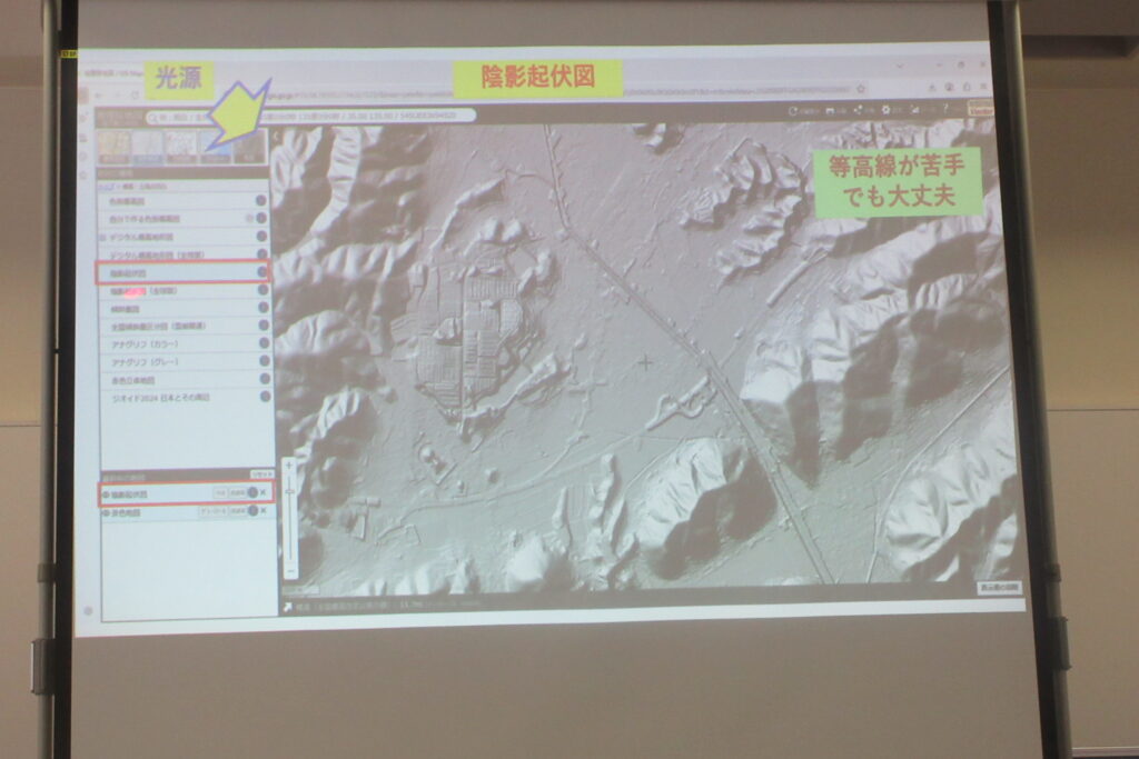 「地理院地図」を使って地形を見よう、とドローンのデータから地形図を作る、の2部構成の講座に参加しました。