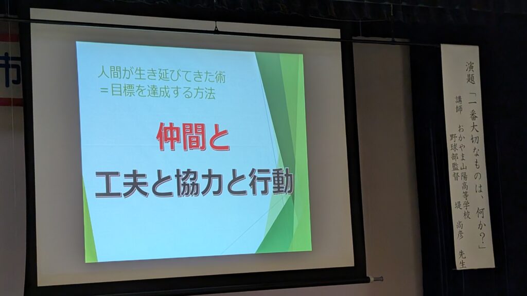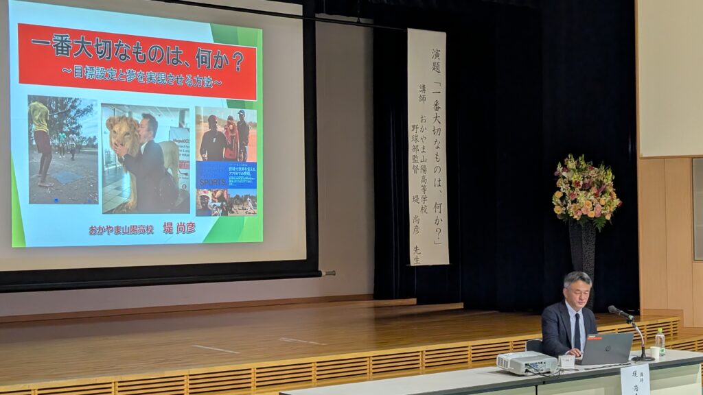 おかやま山陽高校野球部監督の堤尚彦氏の「一番大切なものは、何か?」と題した記念講演は、野球にとどまらない教育の本質にも迫る感銘深い内容でした。