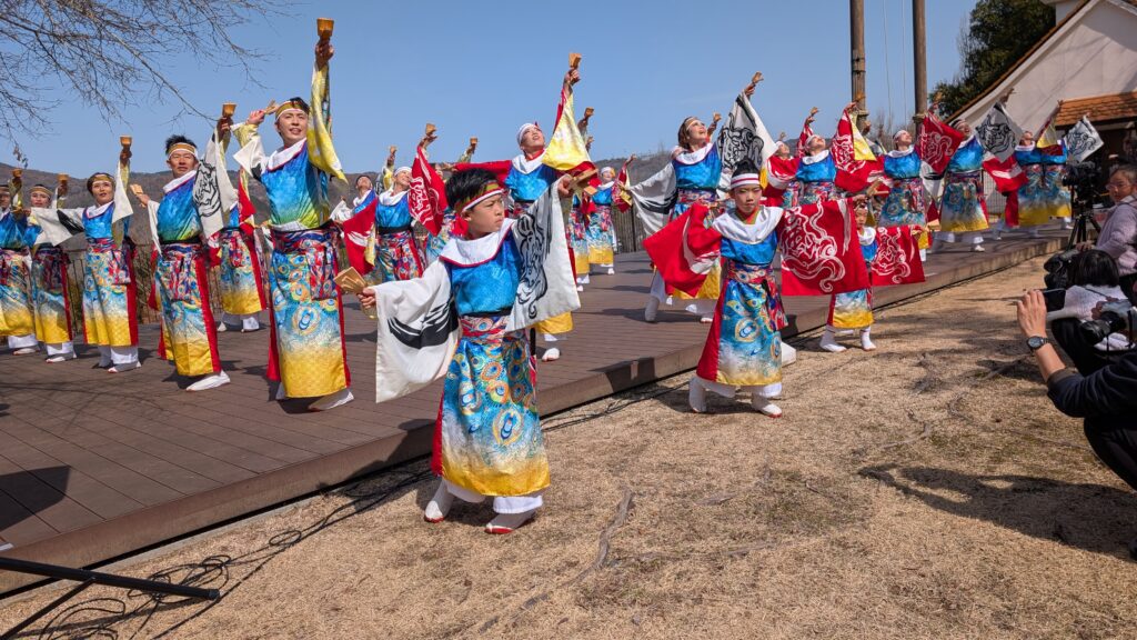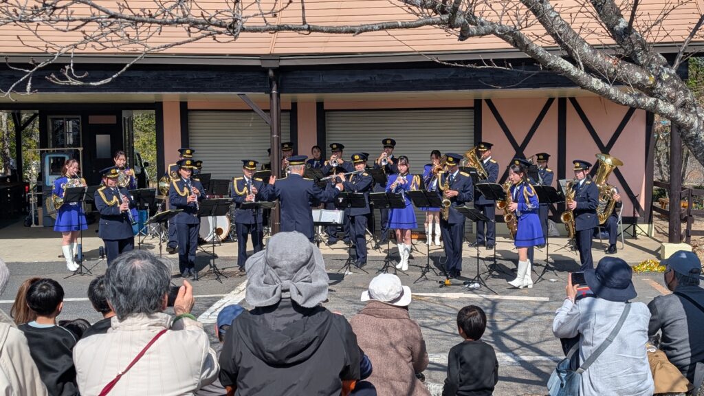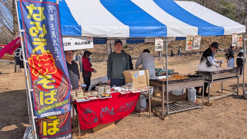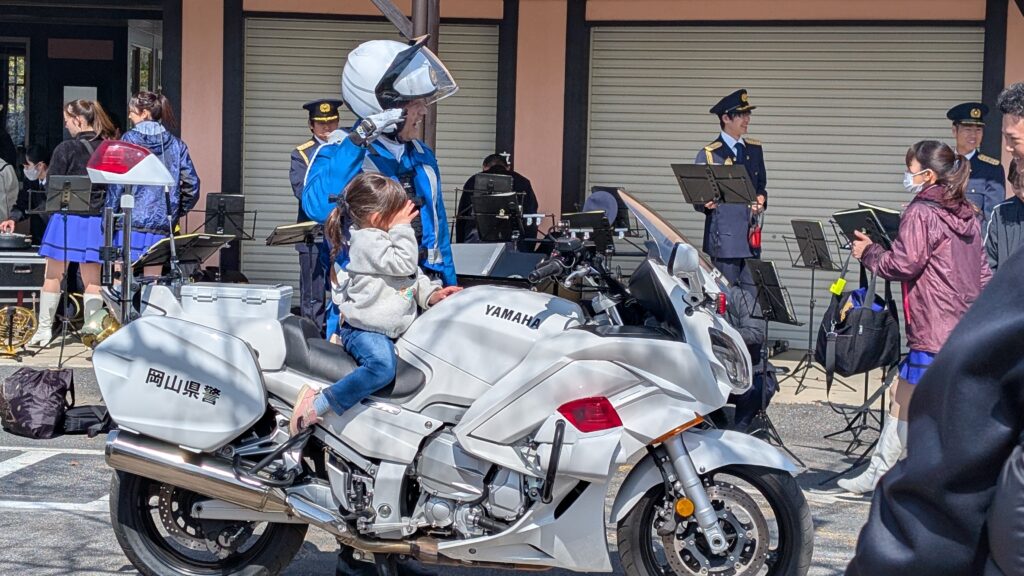 芝生広場ステージでは岡山うらじゃ連などで盛り上がりました。食ブースには浪江町のなみえ焼きそば、安心安全ブースでは白バイ、パトカーや岡山県警音楽隊の演奏もありました。