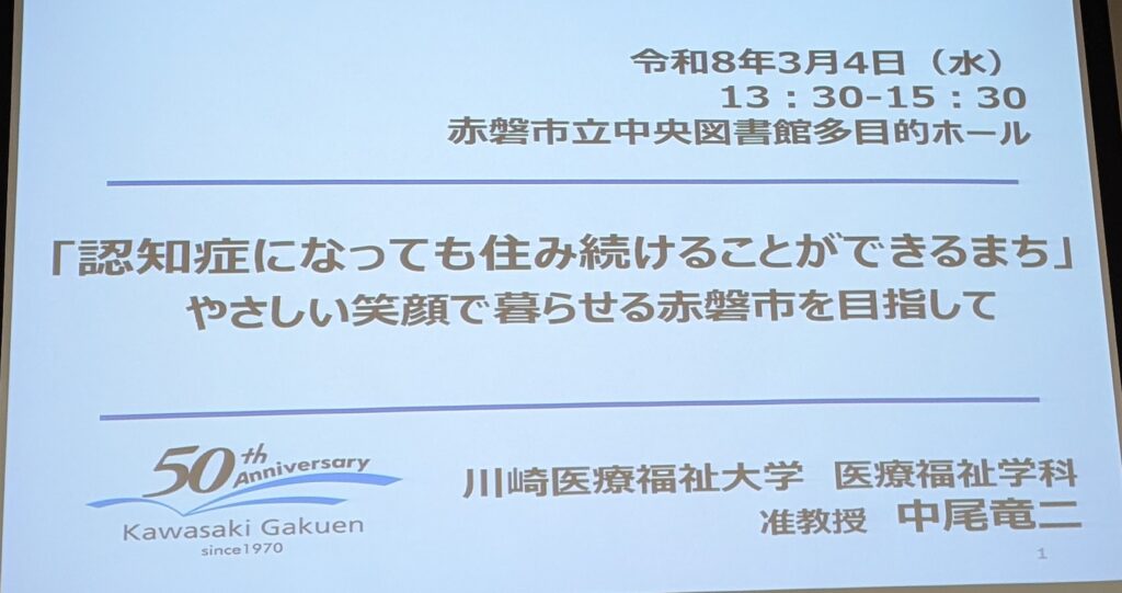 赤磐市立中央図書館で「認知症にやさしい地域づくり講演会」がありました。