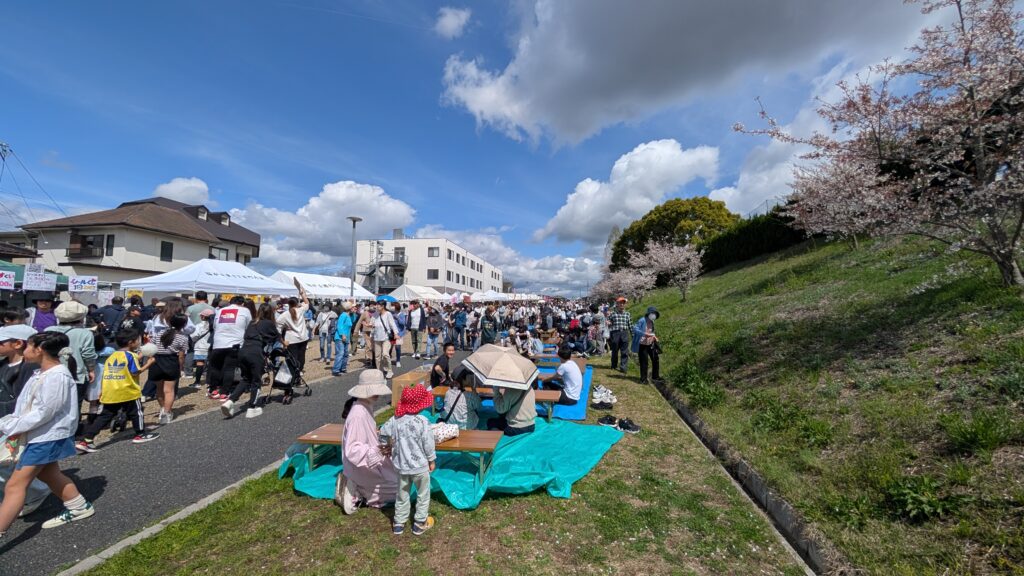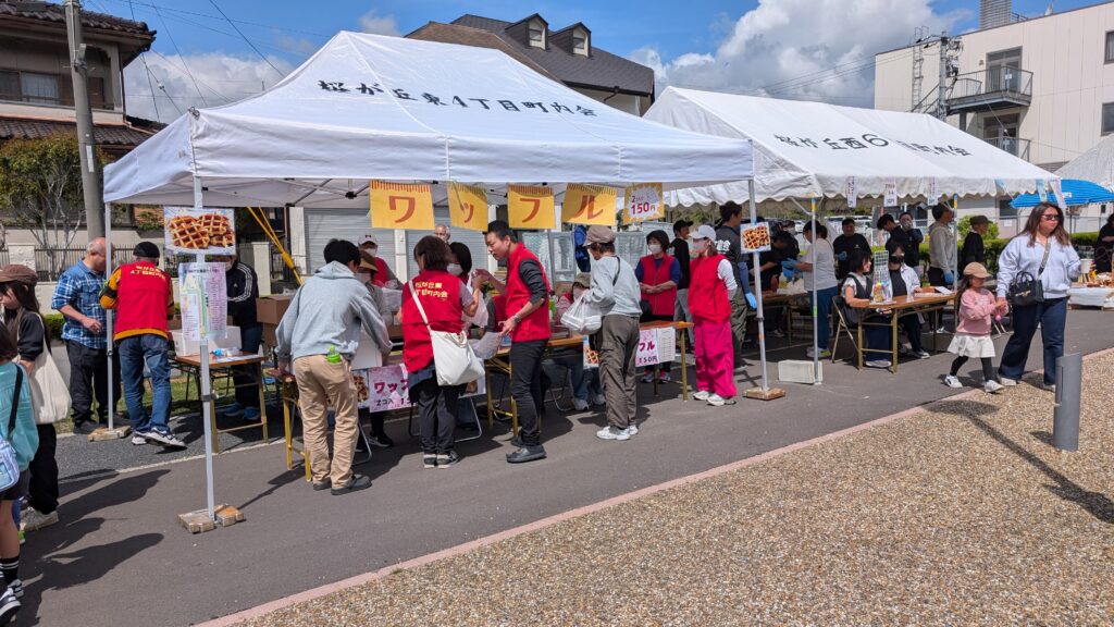 前日の雨とは打って変わった晴天に恵まれて、満開の桜の下での中央緑道には各町内会や青年会などの出店が並び、大勢の方が繰り出して大にぎわいでした。