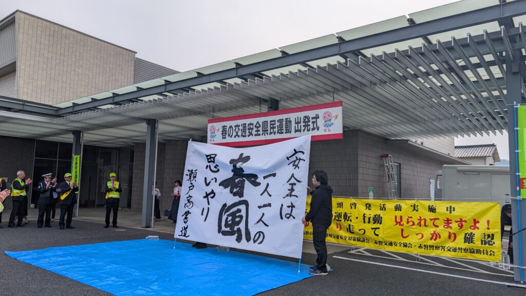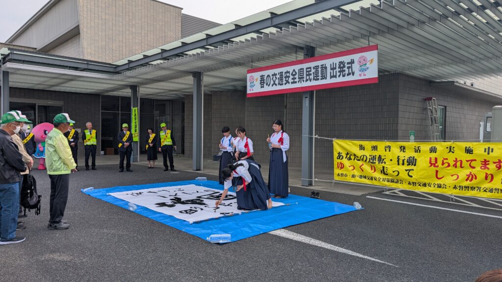今年も瀬戸高校書道部の皆さんの「安全は一人一人の春風思いやり」との素晴らしいパフォーマンスを見せていただきました。本当に少しの思いやりでお互いに安全で気持ち良いドライブが楽しめます。