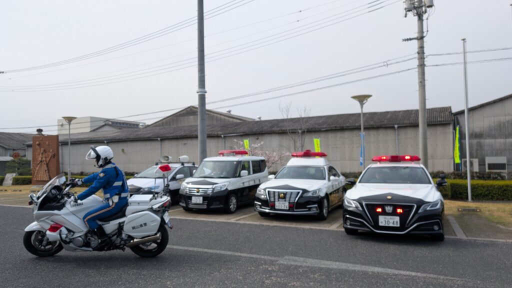 式後には早速白バイ、パトカーが街頭啓発に出発されました。